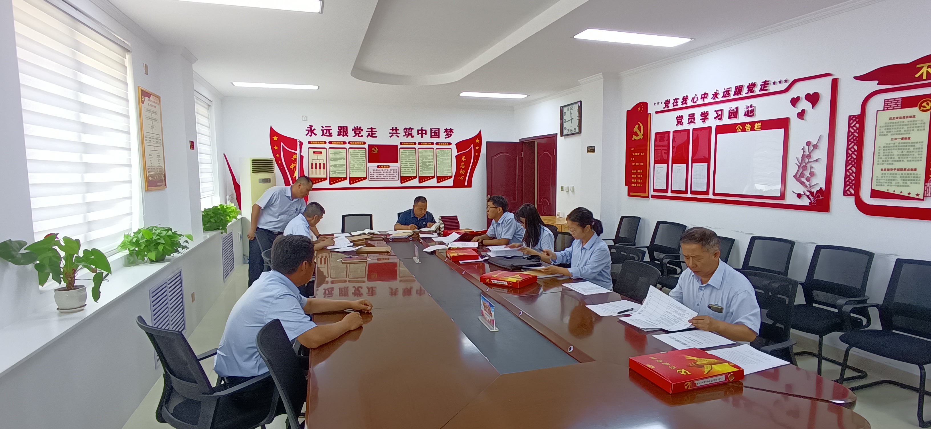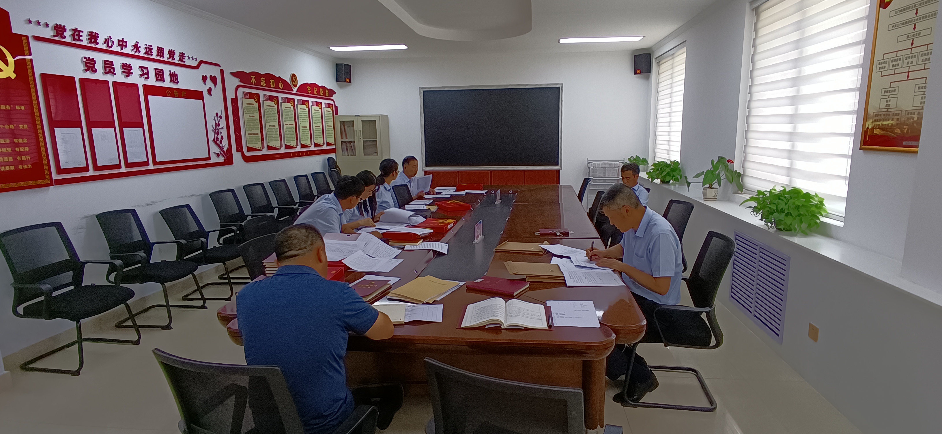 7月7日,洛陽黃河同力水泥有限責任公司黨群部牽頭成立支部標準化規(guī)范化建設檢查考核組,來到騰躍同力公司,利用一整天時間,對公司3個支部“雙化”建設情況進行檢查考核。檢查組來到各支部“黨員活動室”,聽取支部書記關于黨支部標準化規(guī)范化建設工作匯報,按照《省管企業(yè)黨支部標準化規(guī)范化建設驗收細則》從“組織設置”、“班子建設”、“組織生活”、“黨員教育管理”、“基礎保障”、“考核評價”六個方面進行對照檢查,逐項查閱資料,評估打分。檢查組還分別與支部書記們進行談心談話,傾聽思想心聲,了解工作實際。下午,檢查組對檢查情況進行匯總反饋,總結(jié)各支部工作亮點,指出存在問題不足,并就下步完善細節(jié)、改進方向提出意見和建議。