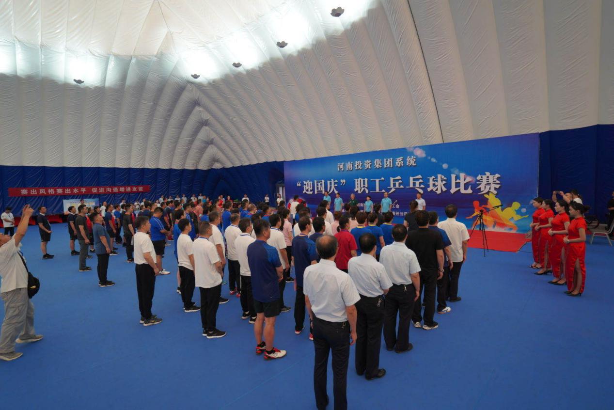 9月10日,河南投資集團(tuán)“迎國慶”職工乒乓球比賽在洛陽市宜陽縣鳳凰嶺拉開帷幕。開幕式上全體肅立,奏唱國歌,裁判員代表、運動員代表依次進(jìn)行了宣誓,河南投資集團(tuán)有限公司黨委委員、紀(jì)委書記張宏麗致辭并宣布比賽開幕。